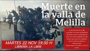Por su parte, Pasaje Seguro ha organizado para este martes a las 19:30 en La Libre, la proyección del documental de la BBC ‘Muerte en Melilla’ «que contradice la versión del Ministerio de Interior sobre el multitudinario salto a la valla de Melilla de este verano que acabó en tragedia y eleva la cifra de víctimas y desaparecidos».