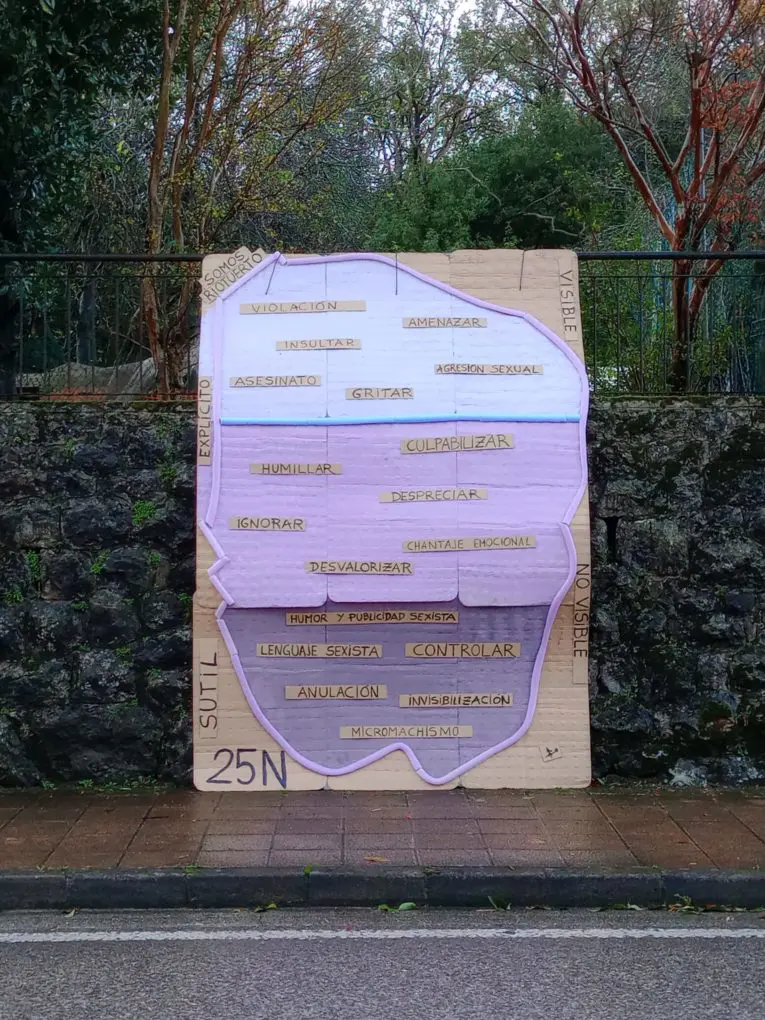 Así, en la cima, además de los feminicidios y las agresiones sexuales, se incluyenactos también visibles, como amenazar, insultar o gritar. En la parte media, también explícitos, pero no visibles, se encuentra el desvalorizar, ignorar, culpabilizar o despreciar. Finalmente, en la base del iceberg, los casos más sutiles e invisibles como la anulación, el control o la invisibilización.