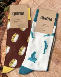 Siempre buscando procesos de fabricación sostenibles, respetuosos con el medioambiente, kilómetro cero y éticos. Así, según explicaban en la entrevista mantenida para El Faradio de la Mañana, siempre que pueden cuentan con productores locales y, si no es posible, buscan lo más cerca posible. Así es como han descubierto Pradoluengo, un pueblo de Burgos donde hay «cinco o seis» empresa de calcetines. Y allí es donde fabrican sus calcetines personalizados con ilustraciones de panderetas o de los raqueros. Para las Totebags se han tenido que ir hasta Alicante, donde han encontrado una empresa que fabrica 100% algodón orgánico y estampación sostenible.
