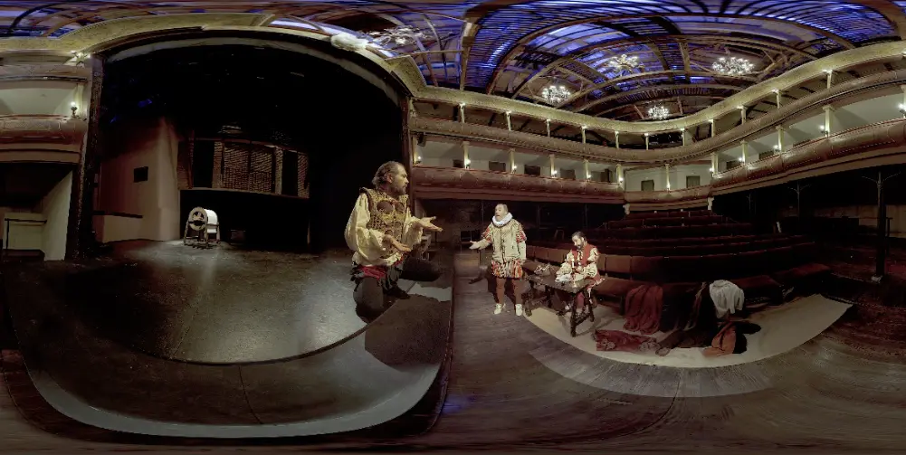Fieles a su filosofía de incorporar las nuevas tecnologías digitales a sus producciones escénicas, Ruido Interno presenta en esta ocasión un montaje que indaga en el Siglo de Oro Español y en la obra y figura del autor del Quijote a través de un sorprendente formato que combina la presencia física de un actor con la realidad virtual sobre el escenario.