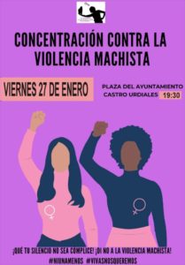 La Asociación Feminista y LGTBI+ «LAS SINSOMBRERO» de Castro-Urdiales, comunica la convocatoria de la acostumbrada concentración de los últimos viernes de cada mes a las 19:30. h. en la plaza del Ayuntamiento, en repulsa a los feminicidios por Violencia Machista.