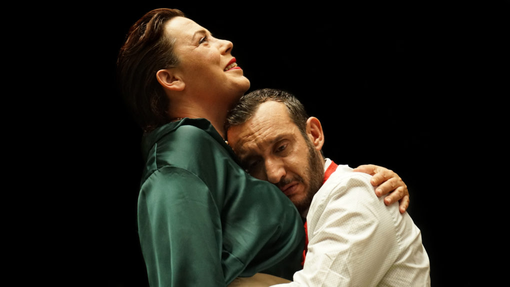 En el escenario un actor, una actriz y un músico. De edades parecidas, construyen dos personajes de los que entran y salen permanentemente: una pareja que se acaba de separar después de una larga convivencia en la que ambos han soñado acabar sus vidas junto al otro. Tienen una hija, que hace que esa separación no sea tal, y que la famosa frase del rito católico adquiera todo su vigor: “hasta que la muerte nos separe”.