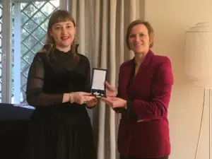 Con la Embajadora de Finlandia, que entregó la medalla en nombre del Presidente de la República de Finlandia