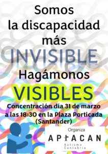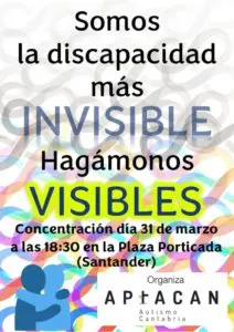 La asociación APTACAN, centrada en la atención a personas con autismo en Cantabria ha convocado para el viernes a las 18:30 una concentración en la Plaza Alfonso XIII, junto al edificio de Correos, de Santander para dar visibilidad a esta discapacidad.