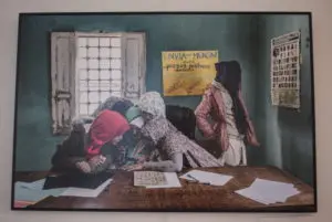 La exposición recoge, además, numerosas fotografías de las actividades desarrolladas en los cuatro centros educativos de los campamentos, como el “Simon Bolívar” cuyos estudiantes son inmortalizados trabajando para enviar mensajes y cartas a los presos políticos saharauis encarcelados por Marruecos.