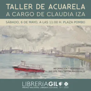 El sábado, Gil propoe un taller de acuarela para adultos a cargo de Claudia Iza. Será a las 11:00 de la mañana y tiene un precio de 15 euros que incluye todos los materiales necesarios para la actividad. Es imprescindible reservar plaza en: 942 075 762 / info@libreriagil.es