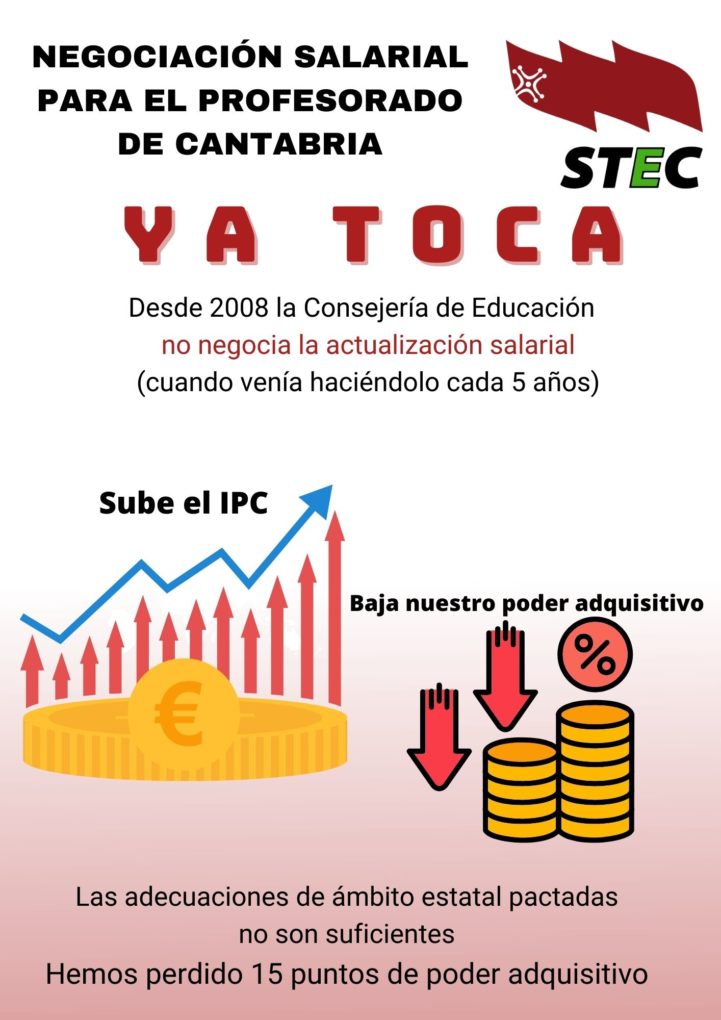 STEC denuncia la pérdida de 15 puntos de poder adquisitivo del profesorado de Cantabria