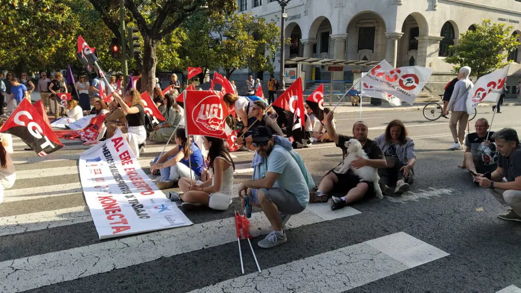 Decenas de personas cortaron la calle Calvo Sotelo para volver a hacer oír su sentir ante la amenaza de perder sus puestos de trabajo. Críticas hacia la compañía por su decisión unilateral, pero esta vez con un poco más de fuerza, la que les da una sentencia que frena las intenciones de Konecta (que se fusionó recientemente con Comdata, quien gestionaba anteriormente ese centro laboral, formando un grupo que tiene la presencia del fondo de inversión británico ICG).
