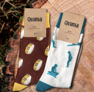 En su afán por combinar diseño con productos sostenibles, cuentan, siempre que pueden con productores locales y, si no es posible, buscan lo más cerca posible. Así es como han descubierto Pradoluengo, un pueblo de Burgos donde hay «cinco o seis» empresa de calcetines. Y allí es donde fabrican sus calcetines personalizados con ilustraciones de panderetas o de los raqueros. Para las Totebags se han tenido que ir hasta Alicante, donde han encontrado una empresa que fabrica 100% algodón orgánico y estampación sostenible y así con todo.