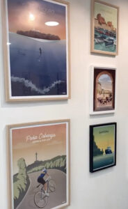 Pueden ser souvenirs, claro, pero también artículos interesantes para gente de aquí que puede sentirse identificado con las imágenes. Un motorista llegando al faro, una caminante con su perro en el alto de la Picota, una chica con la tabla de surf en la playa de Somo, un pesquero entrando a puerto en Santoña o unos paseantes por la Plaza Roja de Torrelavega. Todo con este toque que identifica a este estudio tras el que están Lara y Marie quienes no han olvidado las tradiciones de la tierra y también presentan artículos que se identifican con el juego de bolos, las panderetas o las palas, el deporte playero por excelencia en la región.