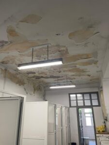La Sección Sindical de CCOO en el ferrocarril ha destacado, además de las averías que constantemente sufren los trenes y que son más mediáticas por el perjuicio que causa a la ciudadanía, el deficiente estado de las instalaciones situadas en Cajo, con unos vestuarios que se encuentran en un edificio en ruinas, con desprendimientos en parte del techo del taller, con vías y agujas en mal estado, enormes goteras, cuadros eléctricos en mal estado, fosos que se inundan… similar situación tienen las instalaciones de La Marga y de la Calle Castilla y ha denunciado que, a pesar de que llevan años trasladando la situación a la empresa, con partes de información de riesgos y continuas denuncias a la Inspección de Trabajo con las consiguientes sanciones, todavía no se tienen unas mínimas condiciones que permitan a los y las trabajadoras desempeñar su labor de forma digna.