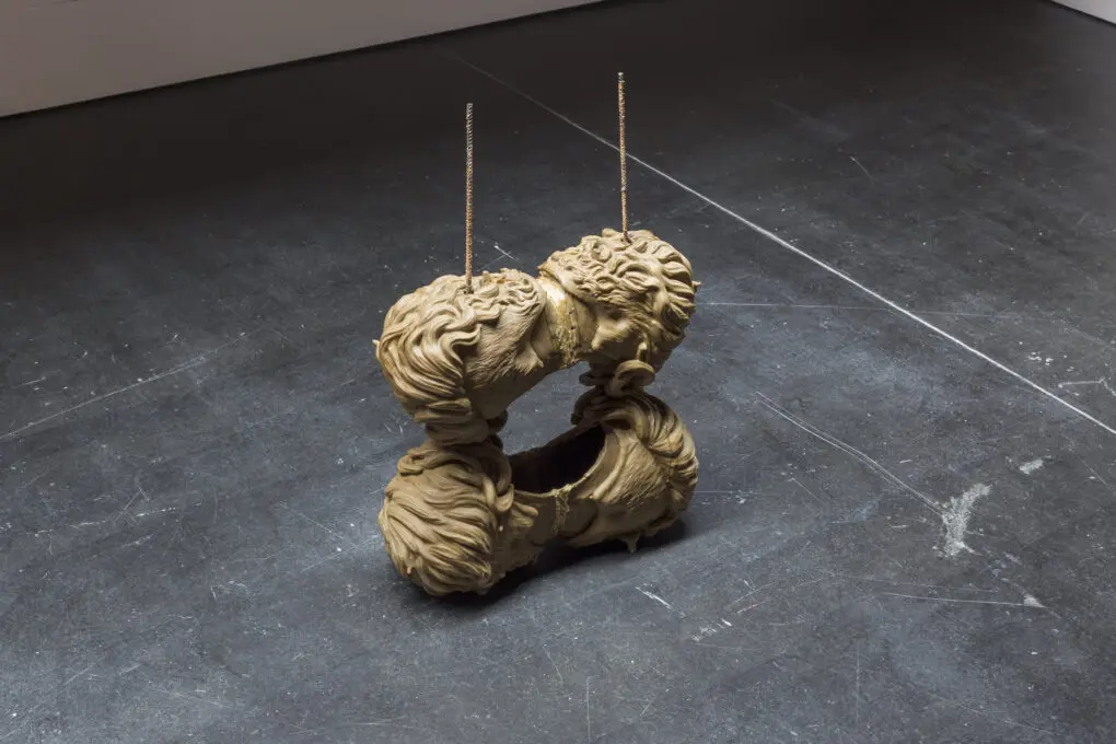 «red / red / red / peruke» es un diálogo fascinante entre la obra de Aurrekoetxea y la idea del «antibusto», que representa un cuerpo definido por sus ausencias. La artista ha utilizado el peinado como un gesto escultórico para construir volúmenes, creando conjuntos de cabezas en diferentes materiales como resina o cera. La configuración de estas cabezas está determinada por la gestualidad del cabello convertido en forma detenida. A través de este enfoque, lo ornamental se convierte en una materia estable, mientras que la fragilidad inherente al cabello adquiere la solidez necesaria para establecer encuentros y relaciones con otros cuerpos.