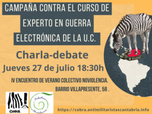 Hace ya casi cuatro meses, C.E.B.R.A. (Colectivo En Busca de una Respuesta Antimilitarista) inició una «Campaña contra el Curso de Experto en Guerra Electrónica» de la Universidad de Cantabria, cuya primera edición acaba de terminar, y por extensión, contra el Clúster de la Industria de Defensa (CID) de Cantabria.