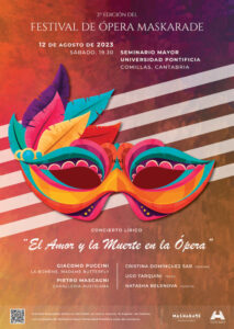 La Iglesia del Seminario Mayor de Comillas acogerá este sábado 12 de agosto el recital lírico “El amor y la muerte en la ópera” a cargo de la soprano Cristina Domínguez Sar, el tenor Ugo Tarquini y la pianista Natasha Belenova. Un concierto que será el punto de partida de la segunda edición del Festival de Ópera Maskarade. En esta cita inaugural, que comenzará a las 19:30 horas, se podrán escuchar algunas de las arias y dúos más bellos de las óperas “La Boheme” y “Madama Butterfly” de G. Puccini; “Cavalleria rusticana” de P. Mascagni; “Pagliacci” de R. Leoncavallo o “Norma” de V. Bellini, entre otras.
