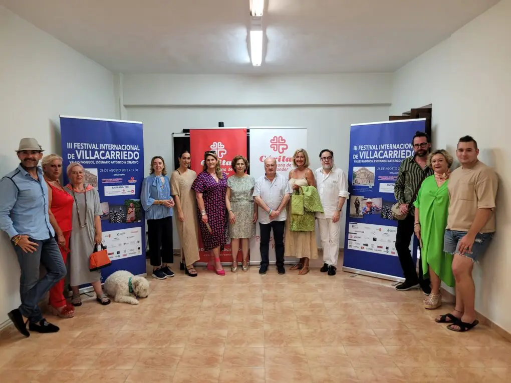En la presentación de la tercera edición del Festival Internacional de Villacarriedo participaron el alcalde de Villacarriedo, Ángel Sainz; la presidenta de la Asociación de Creadores, Concepción Revuelta; el presidente de APEMECAC, Miguel Rincón, y la directora de Cáritas Diocesana de Santander, Sonsoles López; y el director del encuentro, José Luis Callejo. También asistieron la presidenta de la Fundación Enfermería de Cantabria del Colegio de Enfermeras, María Luz Fernández; la representante de su junta directiva, Marta Saiz Rejado; y la directora de Relaciones Institucionales, Sostenibilidad e Impacto Social del Grupo Pitma, María Eugenia Cuenca-Romero. La bailarina, Sofía Palencia, los diseñadores Victoria Herreros, María José Pereda de Castro y Martín Vuelta; y el artista Manuel Pereda.