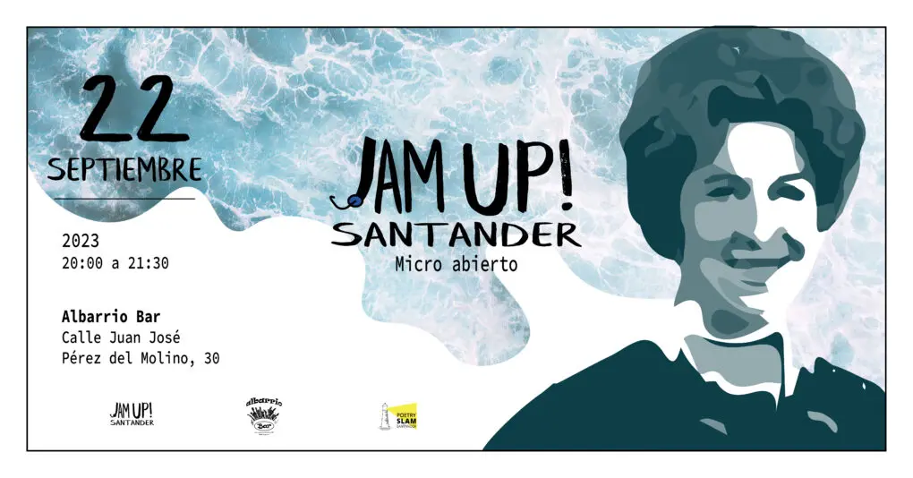 El 22 de septiembre a las 20:00 horas en Albarrio Bar( C. Juan José Pérez del Molino, 30, Bajo, Santander) se celebrará una nueva edición de Jam Up! Santander y la siguiente será el viernes 6 de octubre de 2023 a las 20:30 horas en La Bisagra 2.0 (Calle Río de la Pila 4, Santander). Esta segunda cita estará dedicada a poesía escénica.