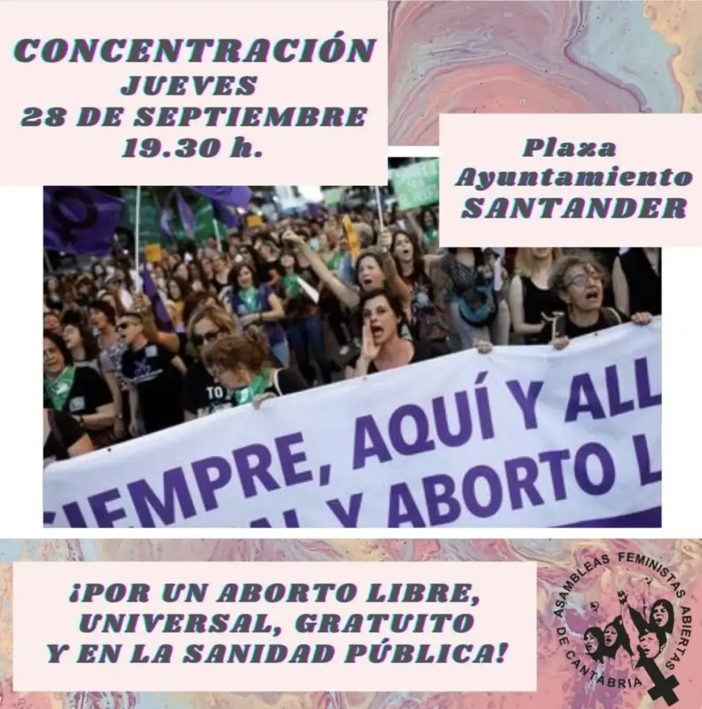 Las Asambleas Feministas Abiertas de Cantabria han convocado una manifestación para este jueves . Exigen un aborto libre, universal, gratuito, en la sanidad pública y fuera del Código Penal.