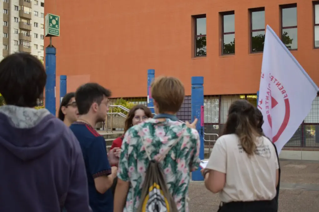 Ayer jueves miembros del Frente de Estudiantes y del Colectivo de Estudiantes participaron en una asamblea en el Inter, y una de las conclusiones será una concentración, a las 14.00 horas en el Rectorado de la UC (el edificio conocido como la pagoda):”¡A los estudiantes ni se nos reprime ni se nos acalla!”