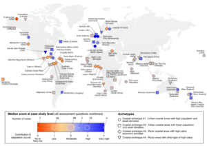 El documento examinó 61 casos de estudio, con una perspectiva basada en la experiencia local sobre el estado de la adaptación costera mundial. Se analizaron tanto los fenómenos extremos como el cambio climático de baja intensidad, incluida la erosión costera, las inundaciones marinas, la subida del nivel del mar y los fenómenos extremos, la salinización del suelo y las aguas subterráneas, las inundaciones interiores provocadas por fuertes precipitaciones y el deshielo del permafrost.