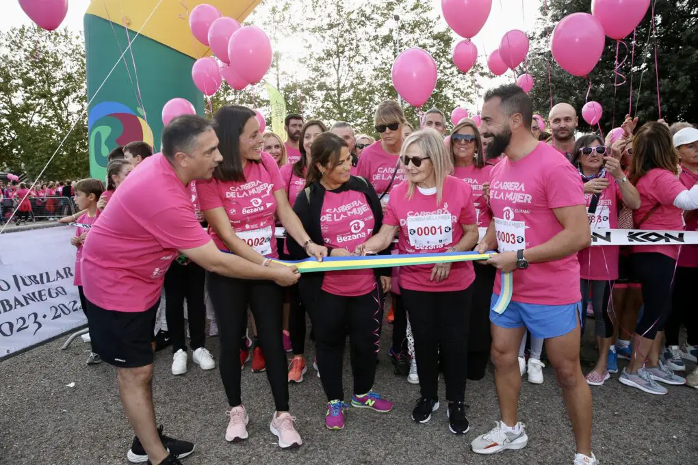 Alrededor de 2.500 personas han teñido las calles de Bezana de rosa en la edición número dieciséis de la Carrera de la Mujer, este sábado. Una prueba deportiva que discurre a lo largo de tres kilómetros y que tiene como objetivo recaudar fondos para que la Asociación de Ayuda a Mujeres con Cáncer de Mama (AMUCCAM) continúe prestando servicio de apoyo psicológico a quienes padecen esta enfermedad. Así lo ha señalado la alcaldesa, Carmen Pérez Tejedor, que antes de la salida de esta carrera se ha mostrado «muy orgullosa de ver a tantos vecinos y amigos colaborando en dar apoyo a quienes sufren cáncer de mama».