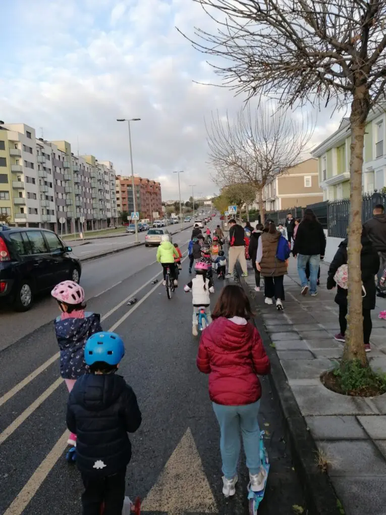 La intención es facilitar la autonomía de niños y niñas, pero también reclaman que se comience a implantar un entorno escolar seguro real porque, como en otros muchos centros educativos, a diario se ven situaciones de riesgo constante con el tráfico y vehículos de motor, ocupando espacios, pasos de cebra, aceras y obligando a niños y niñas a ir por la calzada al no tener paso de ningún tipo, así como bloquear el acceso del Transporte Escolar, aparte del ruido, la contaminación y estrés que se genera en esos momentos.