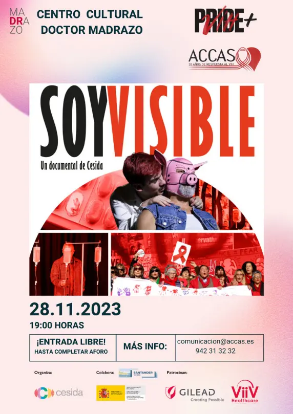 El centro cultural Doctor Madrazo acoge este martes, 28 de noviembre, la proyección del documental ‘Soy Visible’, que tendrá lugar a las 19.00 horas, -con acceso gratuito hasta completar aforo-, y se enmarca en los actos organizados por ACCAS Asociación Ciudadana Cántabra Antisida con motivo de la Semana Europea de la Prueba del VIH.