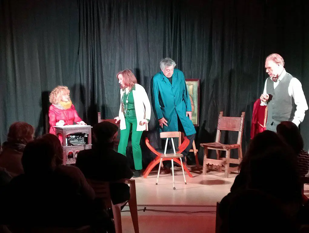 A ambos les dan réplica las actrices Isa Cela y Yolanda Pérez, las dos clientas, que se las tienen que ver con la tozudez anticomercial de los anticuarios. La una, Clienta 1, pretende la silla, no sabe muy bien por qué ni para qué, quizá por mero capricho; la otra, Clienta 2, necesita la pluma, igual a otra perdida, fuente de historias, que alimenta su vocación literaria. Las actrices juegan cumplidamente su papel, si bien a Yolanda Pérez ofrece una mayor seguridad en la encarnación de su personaje. Un trabajo actoral, dirigido de forma que no se rompiera en ningún momento la linealidad de la representación, a lo largo de la cual se suscitaron sonrisas, además de llamar la atención del espectador sobre cuestiones de inmediato interés ético, social, como son las relaciones entre «ser y tener, precio y valor, exigencia y merecimiento, capricho y necesidad…”, como ya señalé en el comentario a la lectura, y cuyos extremos representa las Clientas, en tanto que don Federico Luis y el señor Marcial se encargan de hacérselo ver, actuando en consecuencia con ellas, satisfaciendo a la escritora, no tanto a la aspirante a la silla. En cualquier caso, eso sí, sin venderles ni pluma ni silla, en una suerte de confusión entre ficción y realidad.