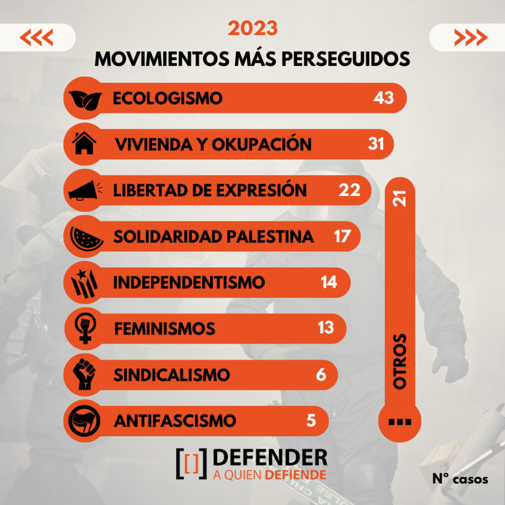 El sindicalismo, a pesar de tener sólo diez casos recogidos en 2022, cuenta con multas y procesos judiciales desproporcionados, como la avalancha de multas por las sanciones durante la huelga vasca del metal. Similar se produjo con las acciones de activistas por el derecho a la vivienda.