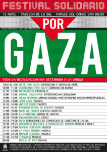 Por otro lado, toda la recaudación irá destinada a financiar ayuda humanitaria a Gaza a través de la UNRWA (agencia de Naciones Unidas para la población refugiada en oriente próximo) y Yayo Herrero considera una gran oportunidad contar en el evento con Raquel Martí, Directora Ejecutiva de UNRWA España para “hablar de la situación en Gaza actualmente y su visión” en una mesa redonda que tendrá lugar por la mañana y con personas palestinas.