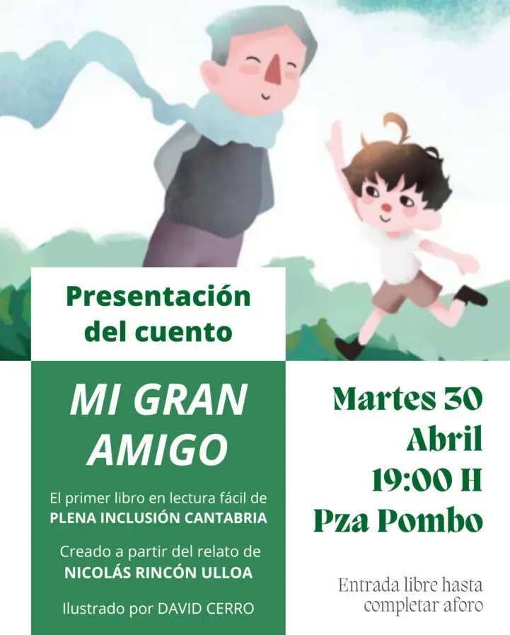 Tras ganar el primer Concurso de Relatos para Personas con Discapacidad Intelectual, Nicolás Rincón Ulloa presenta este martes en la librería Gil el libro ‘Mi gran amigo’, creado por Plena Inclusión a partir de una historia creada por el propio Nicolás. La cita es a las 19:30 horas .