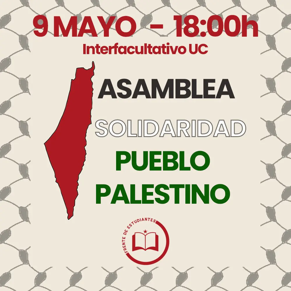 En Cantabria, este jueves 9 a las 18.00 horas en el Interfacultativo, la organización juvenil Frente de Estudiantes ha convocado una asamblea abierta para organizar una acción que muestre la solidaridad de los universitarios con Palestina.