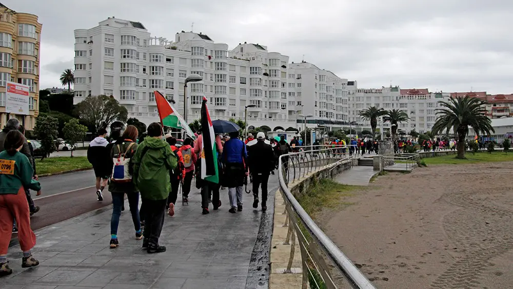 Y después de un recorrido por los altos que rodean Castro Urdiales, los marchantes se volvieron a dar cita en la Plaza para participar en la concentración de apoyo al pueblo palestino y asistir a la lectura del comunicado de la RESCOP.