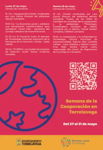 La concejalía de Bienestar Social de Ayuntamiento de Torrelavega organiza desde este próximo lunes 27 de mayo la I Semana de la Cooperación y la Solidaridad en la capital del Besaya. Un programa de actividades que comprende charlas, mesas redondas, proyección de documentales y presentaciones de libros y que según ha explicado el concejal responsable Alberto Rubio, servirá para dar voz a diferentes colectivos y creadores en el ámbito local, regional y estatal que trabajan en el campo de la Cooperación y la Solidaridad.