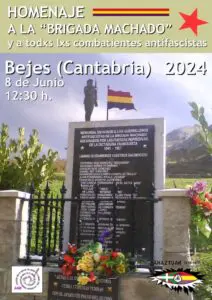 Este sábado, 8 de junio, también organizado por AGE, se realziará el homenaje anual a la guerrilla antifranquista en Bejes, ante el monumento a la Brigada Machado.