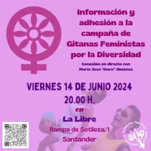 Este viernes, las Asambleas Feministas Abiertas estarán en  en La Libre (Rampa de Sotileza) a las 20:oo horas para conectar en directo con Guru, presidenta de Gitanas Feministas. Hablarán sobre reivindicaciones feministas y la lucha del pueblo gitano así como de su última campaña #YoSíTeCreoSiNoEresGitana