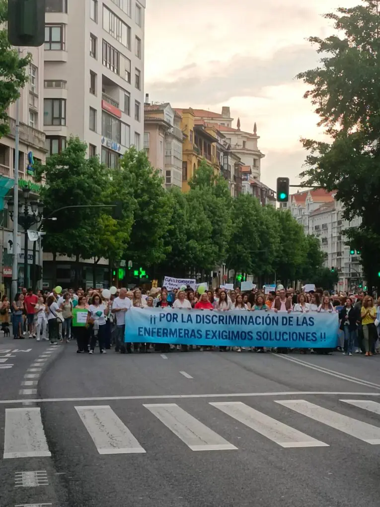 Más de 1.200 personas han marchado por el centro de Santander, de Numancia a Delegación de Gobierno, secundando el llamamiento del Colegio de Enfermería y del sindicato profesional SATSE, en pleno centro, en una tarde veraniega a todos los efectos, con mucho vecino y turista caminante, que se ha topado con ellas, las ha observado y, también, aplaudido.