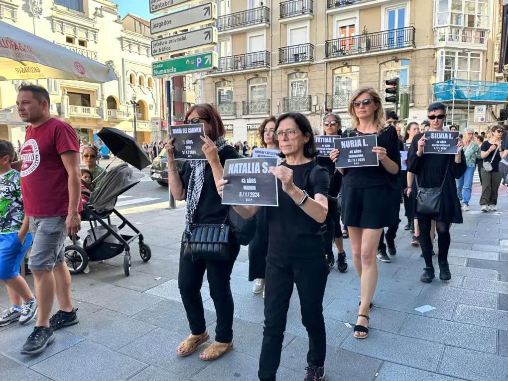Con el nombre de las víctimas presente en todo momento (Petra, Marian, Laura, Amal, Adam, Hiba, Juliana Denise, Manuela, Sara Abigail, y las asesinadas en Salou y en Alicante cuyo nombre no se ha hecho público), un cortejo fúnebre ha recorrido el centro de Santander para representar lo que hay, un insoportable incremento de mujeres asesinadas por violencia de género (o niños y niñas por violencia vicaria, aquella que se ejerce de forma indirecta, a través de otras víctimas que también lo son de violencia de género).