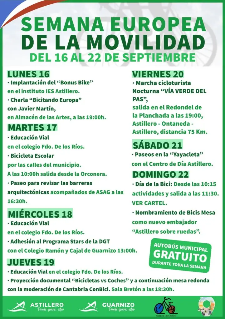 El Ayuntamiento de Astillero se une un año más a la celebración de la Semana Europea de la Movilidad, que como cada edición, se celebra a mediados de septiembre.