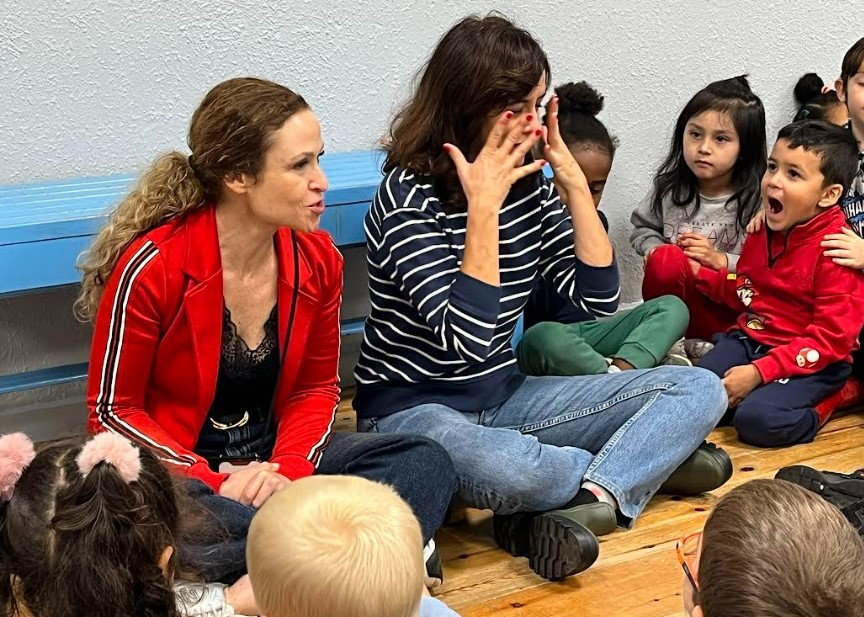En un salón de actos de una escuela con pequeños comediantes entre los tres y los seis años aparecieron a medida mañana de un día luminoso dos actrices de larga trayectoria teatral y cinematográfica: la coruñesa Ana Turpin y la granadina Alicia Cabrera. Recibidas con alborozo, regalos de decenas de dibujos y un video introductorio, los niños del Colegio Público Magallanes pasaron rápidamente del asombro a la curiosidad.