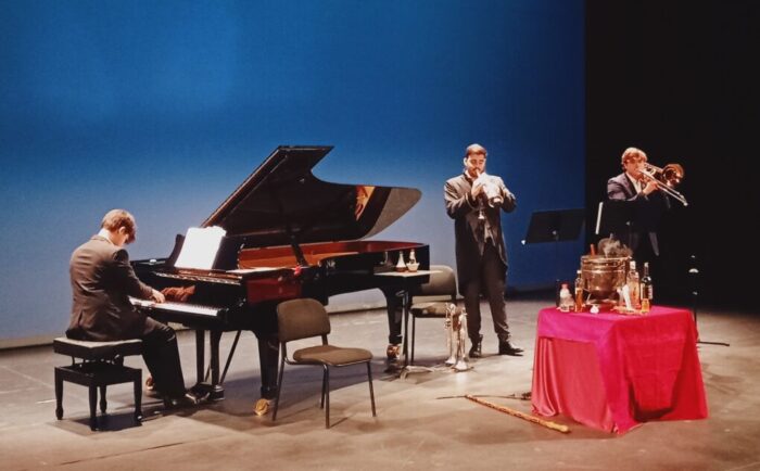 Laboratorio palaciego: una gran olla humea sin parar una mezcla misteriosa. Un hechicero con su cayado sale de las sombras avanzando hasta escenario donde la olla le llama a ejercer su magia y clama: “Busco hacer la poción musical perfecta”. Aparecen en escena dos aprendices: el pianista alquimista (Héctor Sanz) y el trombonista alquimista (Víctor Álvarez). El mago se presenta como el trompeta alquimista (Marco Cubillas). Tres músicos de Cantabria que desde formaciones profesionales en Alemania, Países Bajos o Estados Unidos regresan para constituirse en un trio de cámara estable con encantamientos. Se hacen llamar Littera, mezcla de letras, literaturas y literas.