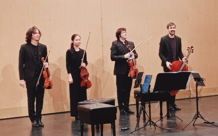El premiado Cuarteto Gerhard, participante en importantes escenarios internacionales, se presentó en la sala Pereda con el reemplazo de la violinista habitual, ahora Shannon Lee, junto a los habituales Lluis Castán (violín), Miquel Jordà (viola) y Jesús Miralles (violonchelo). Parecía dirigir a los cuatro el violista con su partitura llena de metros cuadrados, mientras la levedad de unas tablets eran el auxiliar rítmico de sus compañeros. Para abrir emociones tocaba Bach y cuatro fugas seleccionadas fueron un hermoso comienzo; ya saben Bach-lleza. Luego el Cuarteto de cuerda, en sol menor op.10 de Debussy (1893) aportó mayor vigor y más lirismo en esas armonías cambiantes del francés, con pizzicatos como centro de melodías y suavidades extremas interpretadas con maestría por los músicos gerhardianos.