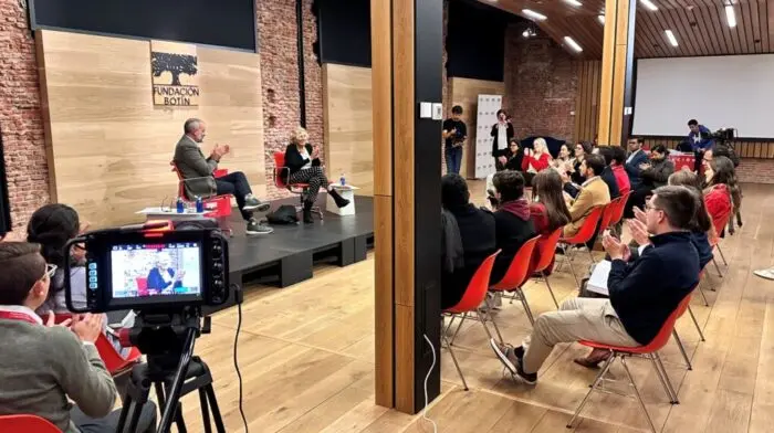Bajo el título ¿Ha dejado de estar de moda la democracia? mantuvo una interesante conversación el pasado 28 de noviembre con Íñigo Sáenz de Miera, director general de la Fundación Botín, en la que abordaron la desconexión entre la clase política y la ciudadanía, la polarización en las instituciones y la importancia de revitalizar los valores democráticos. Sus mensajes son positivos pues está convencida de que los jóvenes tienen una oportunidad fantástica de transformar y revitalizar la democracia a través del liderazgo, la emoción y el entusiasmo: “Cambiar la sociedad es una experiencia extraordinaria, es una especie de arquitectura social. Tú esculpes la sociedad”. Puede verse y oírse su intervención en: https://fundacionbotin.org/podcast/