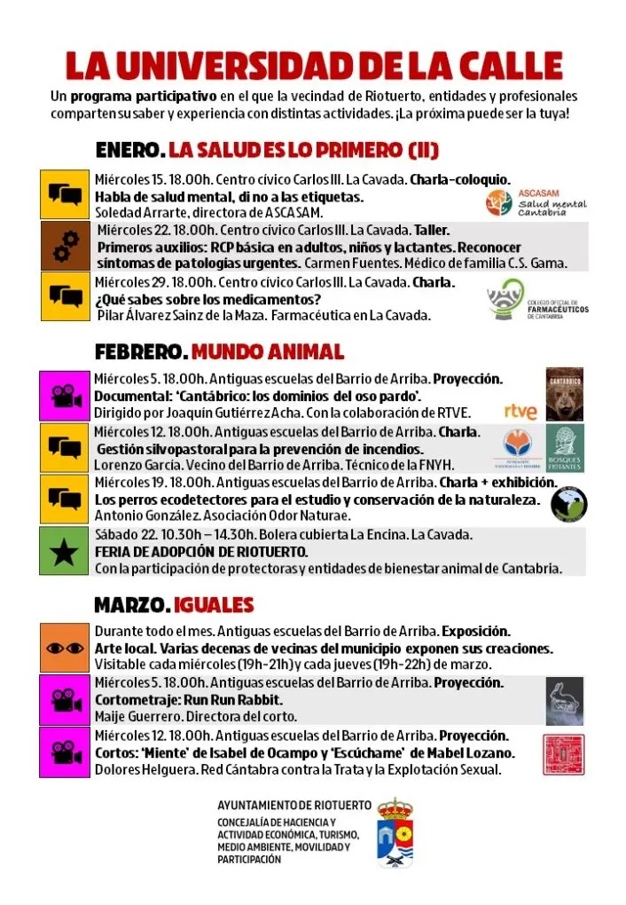 El ciclo cerrará con la celebración de la primera Feria de Adopción de Riotuerto el sábado 22, en horario de mañana en la bolera cubierta de La Encina, en La Cavada, en la que participarán entidades de bienestar animal y protectoras.