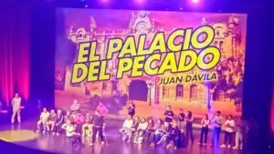 Largas colas en la entrada al palacio. En el escenario 14 sillas y varios focos de ambiente. Lleno absoluto y ambiente con ganas de diversión. Una pantalla anuncia que estamos en un lugar lleno de pecados que un humorista conoce a la perfección y gusta de descubrirlos entre sus espectadores. Y un poco lo consigue, es su entrenado trabajo.