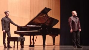 La segunda parte permitió el lucimiento de un tenor con un fraseo impecable, un registro ampliado y una presencia en escena cálida y juguetona. Su canción más sentida y bella de esta mitad –A’vucchella de Tosti, letra de Gabriele D’Anunzio- fue precedida de muchas toses tomadas con paciencia y buen humor; espera resignada y frase repetida: “Echen, echen la tos”. Genio y figura para cantar después el trabalenguas napolitano sobre la boca de la mujer que es como un pequeño pétalo de rosa cuando se seca un poco y se golpea en el frío (en napolitano suena más lindo y difícil de pronunciar). Cerró con el aria y cabaletta final de Gerardo de la ópera de Donizetti Caterina cordado (1844) buscando la fuerza compositiva de un momento de victoria y muerte, dando lo mejor de su expresividad y temperamento vocal.
