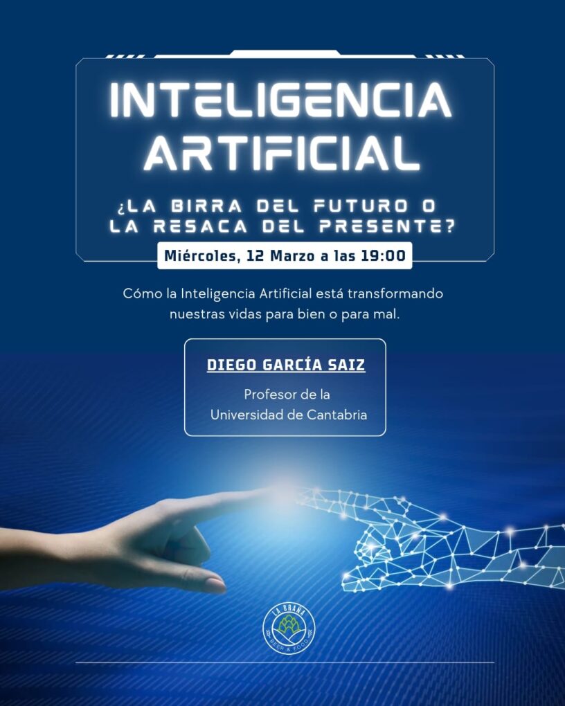 El próximo miércoles 12 de marzo a las 19:00 horas, La Braña Beer & Food acogerá la charla ‘Inteligencia Artificial: ¿La birra del futuro o la resaca del presente?’, con la participación de Diego García Saiz, profesor de la Universidad de Cantabria (UC). La conferencia abordará el impacto de la inteligencia artificial en distintos ámbitos, desde la vida cotidiana hasta sectores clave como la economía, la educación o la seguridad digital.