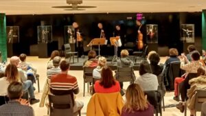 El difícil Cuarteto de cuerdas nº 8 de Shostakóvich fue otro momento emocionante, ejecutado con gran intensidad en esa difícil mezcla de placidez y estruendo de sus cinco movimientos. Dedicado a “las víctimas del fascismo y de la guerra” se agradecen momentos que recuerdan valses y melodías rusas tradicionales. El salto al tercer compositor de la mañana permitió encontrar melodías celtas –Sonnets et Rondeaux– en un compositor vivo italiano. Hubo propina, danzarina y argentina: Por una cabeza, tango de Carlos Gardel (1935). Velada cálida en un sala que acabó a los mismos 20.4 º con que empezó un ensemble cada día más conjuntado, astur y algo cántabro. Un placer.