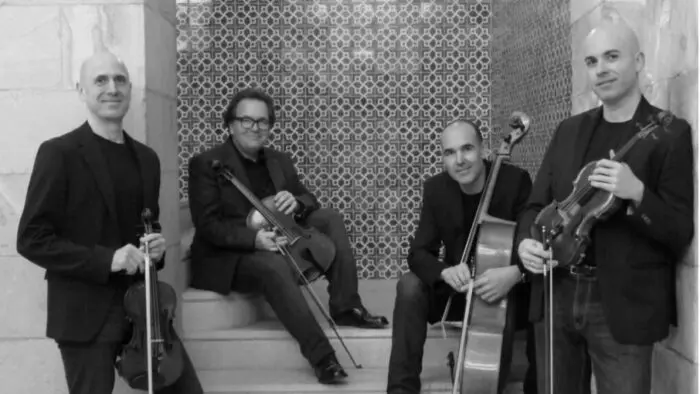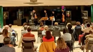 El primer tema fue el Re-Nacimiento trocado de Mier, tocado delante de la persona a la que fue dedicado (“A Maribel, que vive en cada una de estas notas”), con la familia y nieto acompañando; un regalo que no hacía falta trocar (cambiar) por nada más. Interpretado antes por otros cuartetos, la emoción y expresividad aportadas por los cuatro intérpretes astures fue brillante: supieron transformar un villancico renacentista en lo que quería el compositor: “pasar por el corazón”. Nota sobresaliente para Alberto Gorrochategui al chelo, Ricardo Fernández a la viola, David Hevia y Carlos Tagarro a los violines.