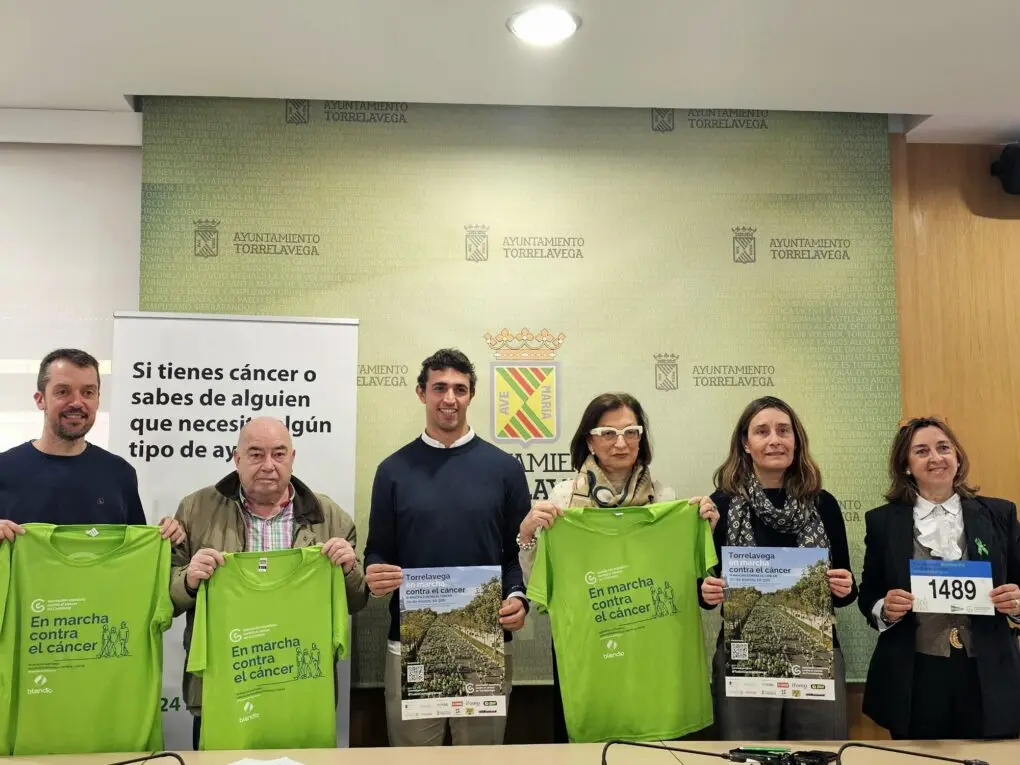 El concejal de Deportes, Nacho González, acompañado por la presidenta a la Junta Local de la AECC en Torrelavega, Ana Barca; la directora general de Deportes, Susana Ruiz; Eugenia Cuenca, del grupo PITMA; y representantes de la Asociación Española contra el Cáncer; ha presentado la IX Marcha Contra el Cáncer de Torrelavega que se celebrará este domingo, 30 de marzo, a partir de las 10.30 horas, con salida en el Bulevar.