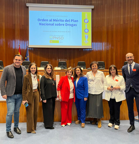 La consejera de Inclusión Social, Juventud, Familias e Igualdad, Begoña Gómez del Río, ha felicitado a la entidad AMAT- Afrontando Adicciones por la condecoración de la Cruz Blanca al Mérito del Plan Nacional sobre Drogas recibida en el acto celebrado esta mañana en el Ministerio de Sanidad, “que reconoce y refrenda la acción y el trabajo desarrollado en la prevención y atención de las conductas adictivas.